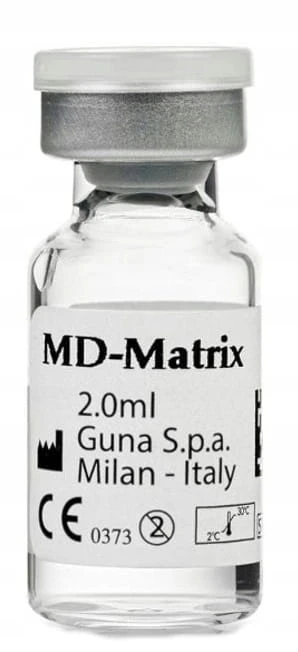 GUNA MD-Matrix (1x2 ml) to specjalistyczny preparat medyczny opracowany przez włoską firmę Guna S.p.a., przeznaczony do regeneracji i odbudowy macierzy pozakomórkowej (ECM – extracellular matrix). Produkt zawiera kolagen oraz składniki aktywne wspierające strukturę i funkcjonowanie tkanek.